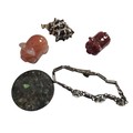 Silver bracelet and three unassociated charms and a coin