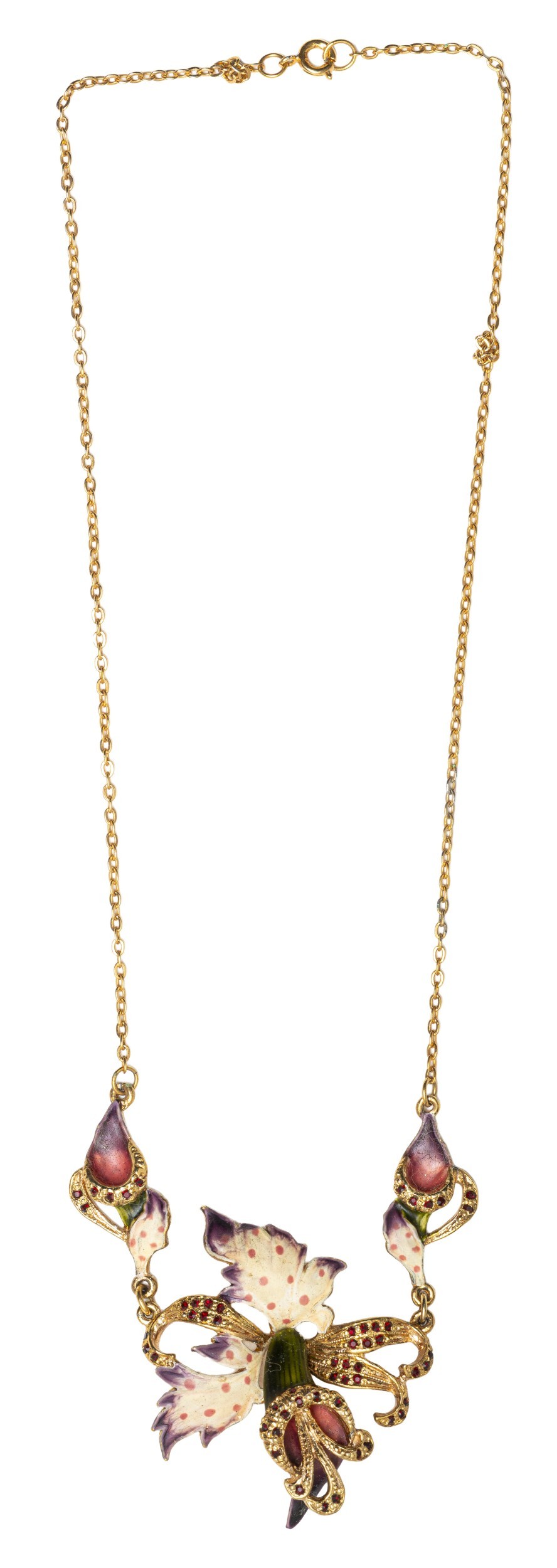 Rose design, enamelled pave set with alternating gemstones, the 43cm necklace with matching earrings
