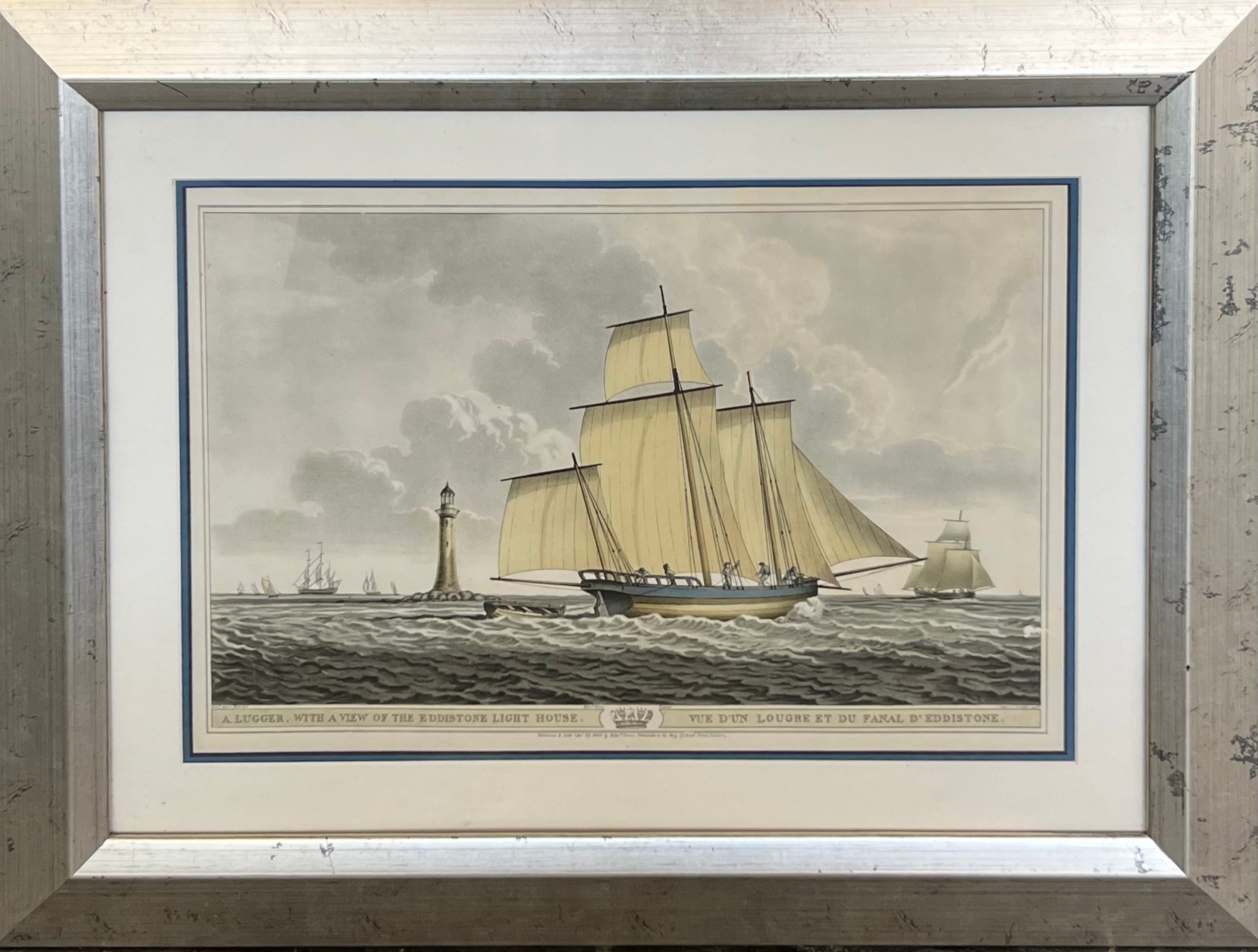 A PRINT, 'A LUGGER WITH A VIEW OF THE EDDISTONE LIGHTHOUSE'