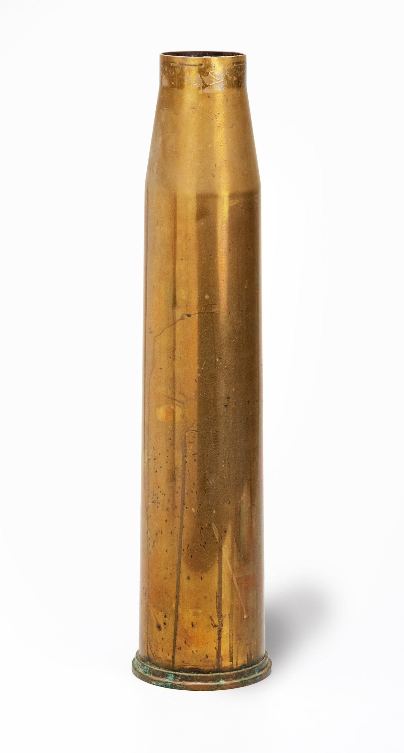 A BRITISH ARTILLERY BRASS SHELL CASING, WORLD WAR II
