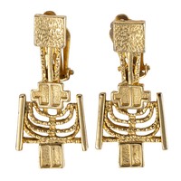 Comprising: a brooch, length 7cm, a pair of earrings and a ring, size K