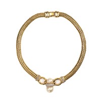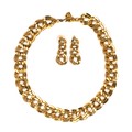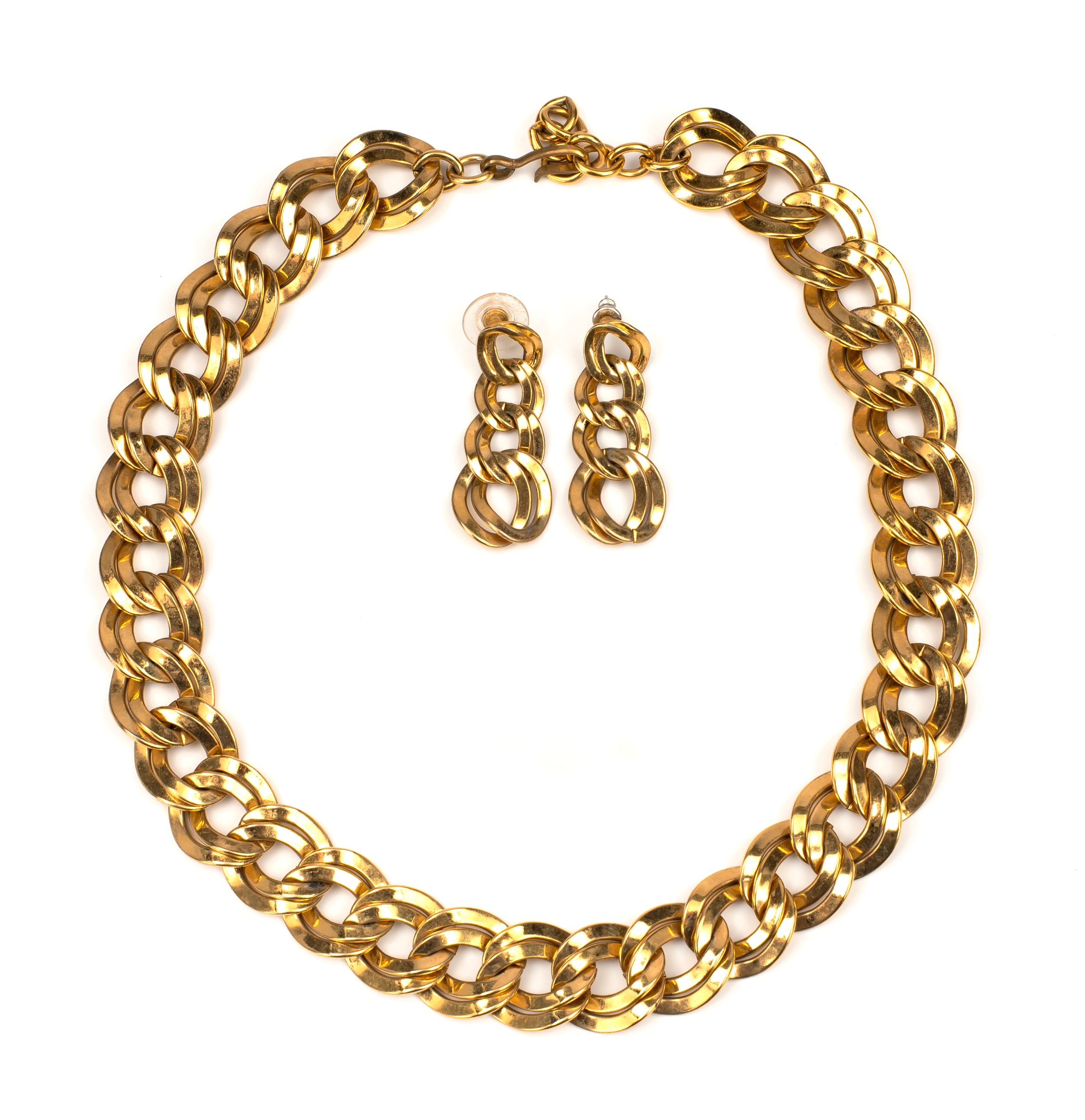 The double curb link necklace 45cm in length, 2cm wide, the matching earrings, 5cm in length