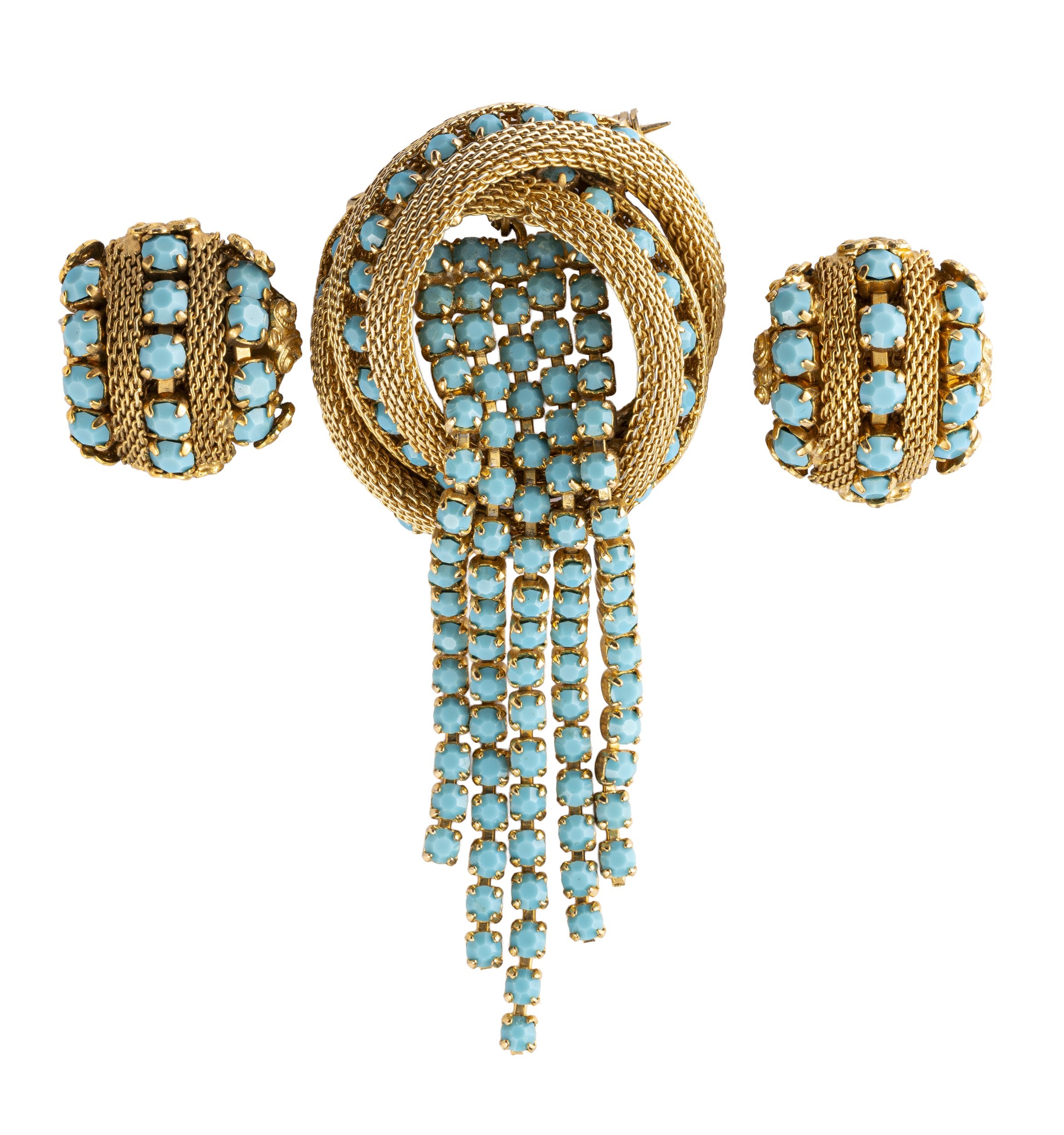 A SUITE OF GILT TURQUOSE JEWELLERY, PARIS, 1960