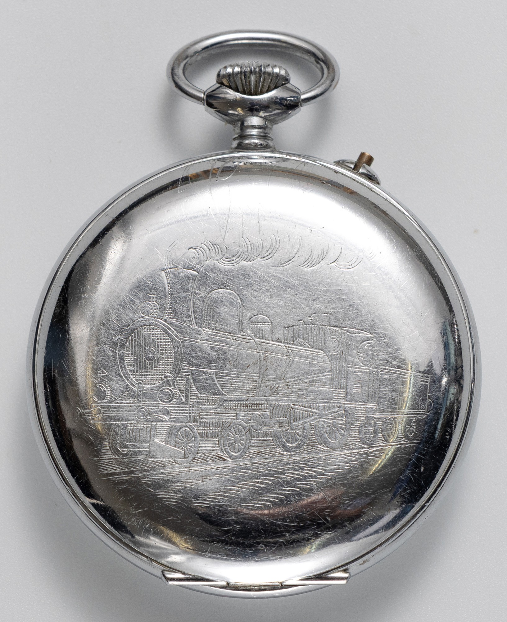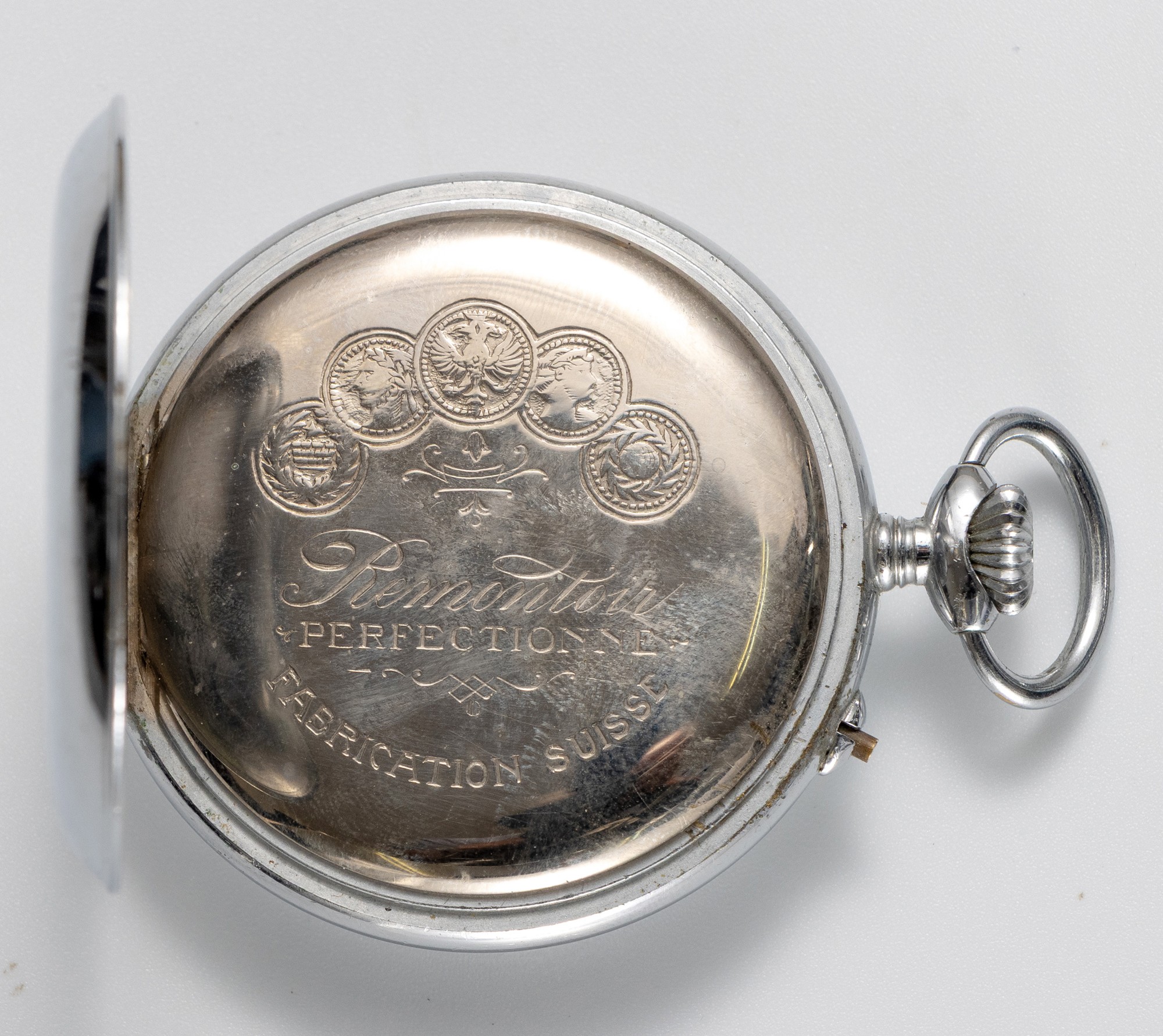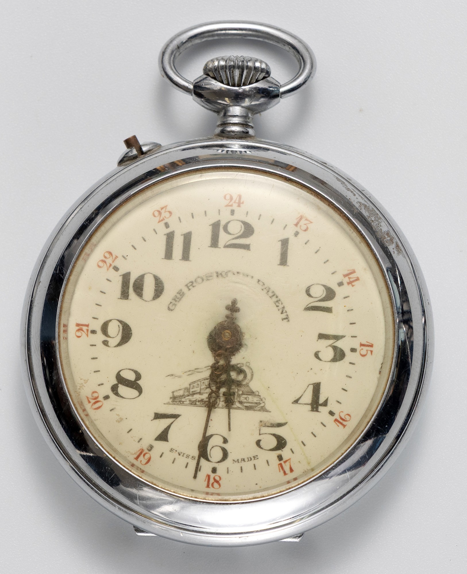 A SILVER-PLATED HUNTER POCKET WATCH, GRE ROSKOPF, PATENT SWITZERLAND