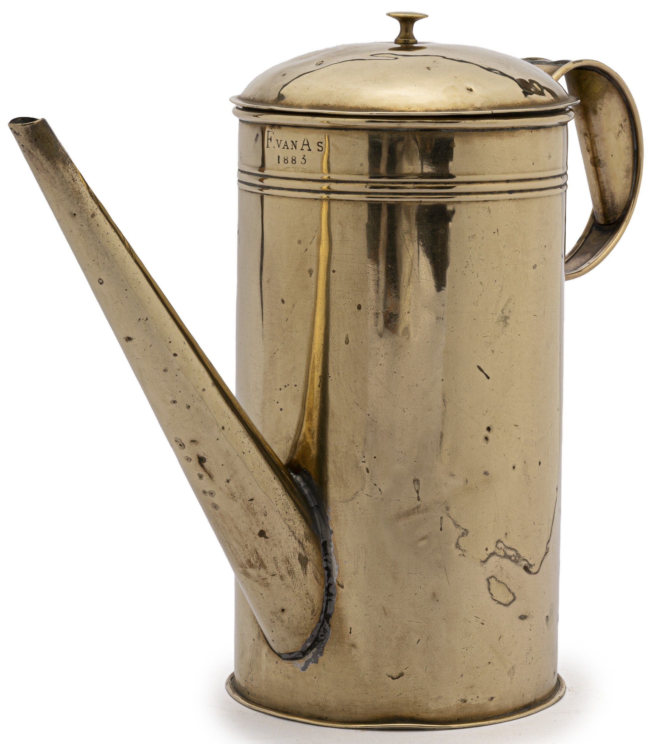 A CAPE BRASS COFFEE POT, F VAN AS, 1883