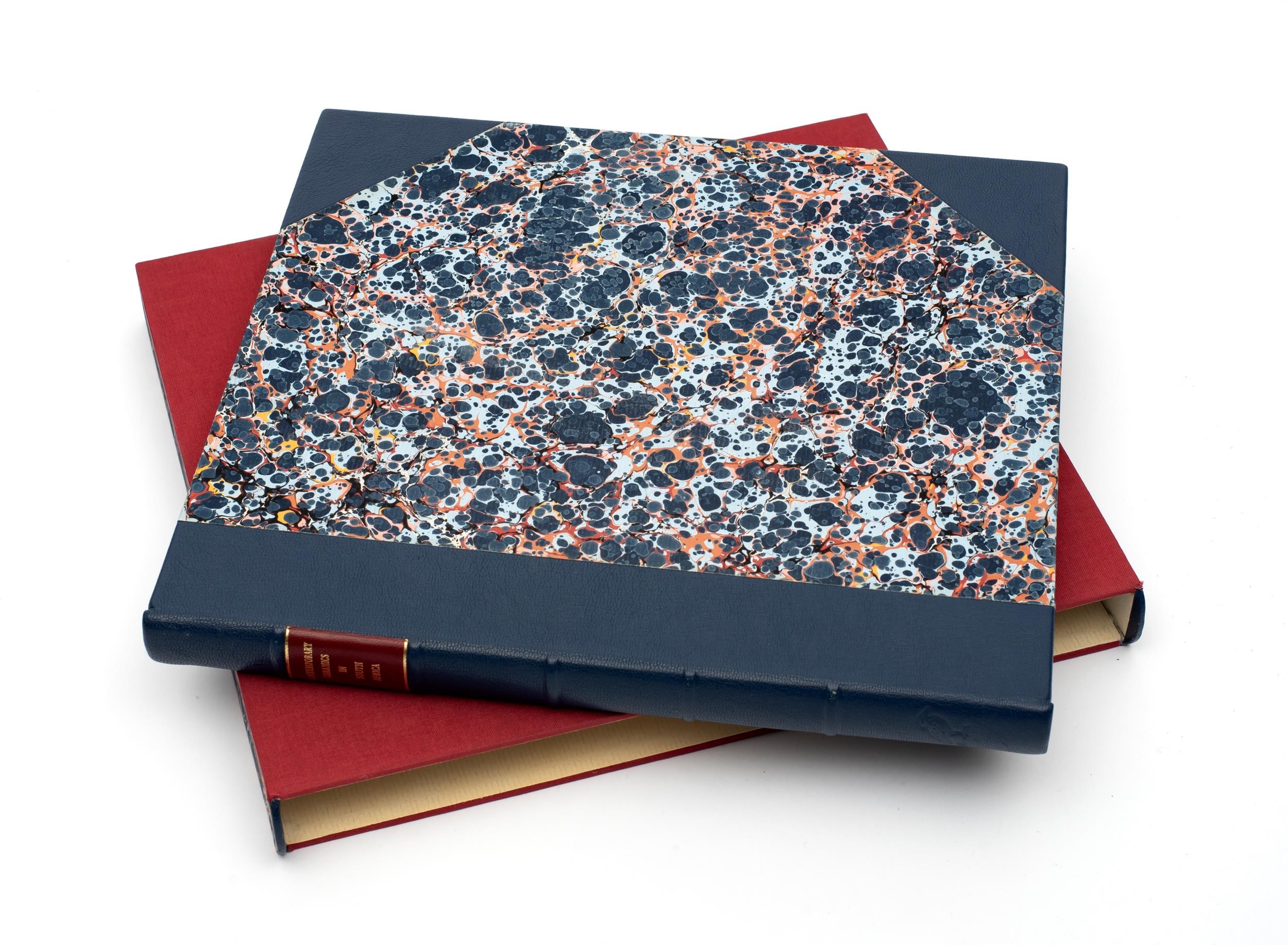 4to +208pp. Half leather hardcover binding, gilt lettering to spine. Marbled front boards. Housed in slipcase which has marbled edges and cloth cover. Inlaid photograph on front board.