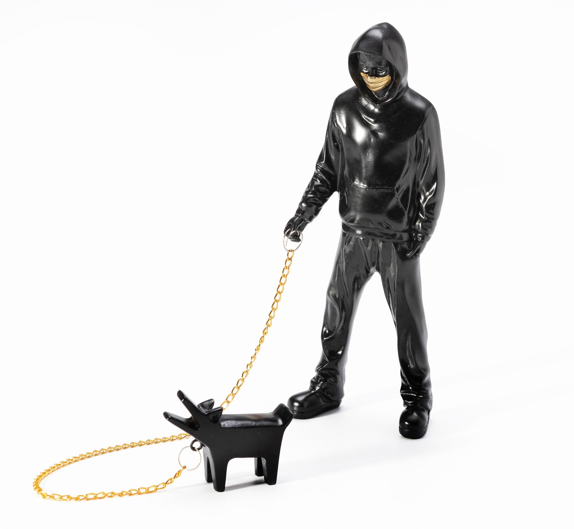 After Banksy (British 1974 - ) MAN LEADING DOG BLACK