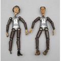 Dolls feature articulated ball joints allowing various poses, minor wear consistent with age, one man missing a foot
