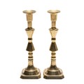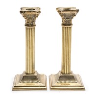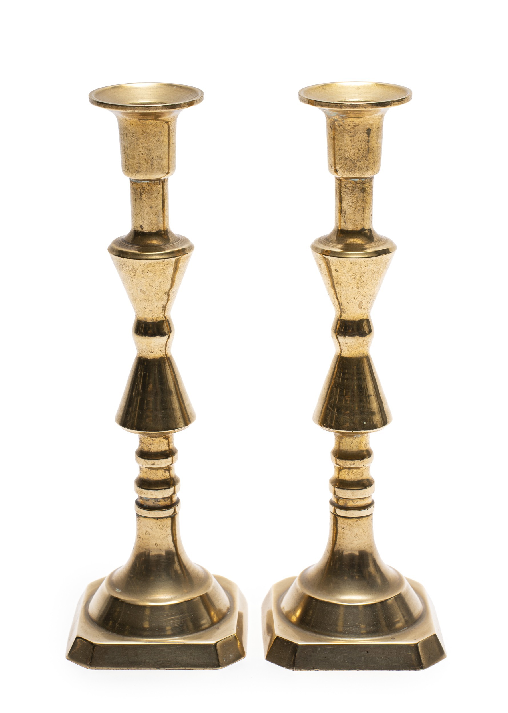 Each sconce raised on a turned stem, on a stepped octagonal base