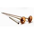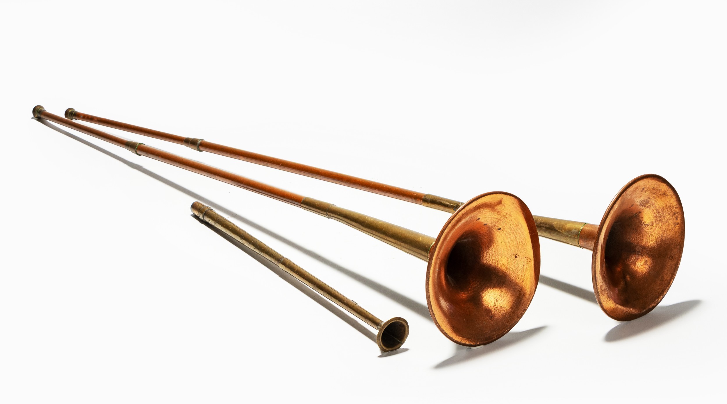 A PAIR OF COPPER AND BRASS HUNTING HORNS