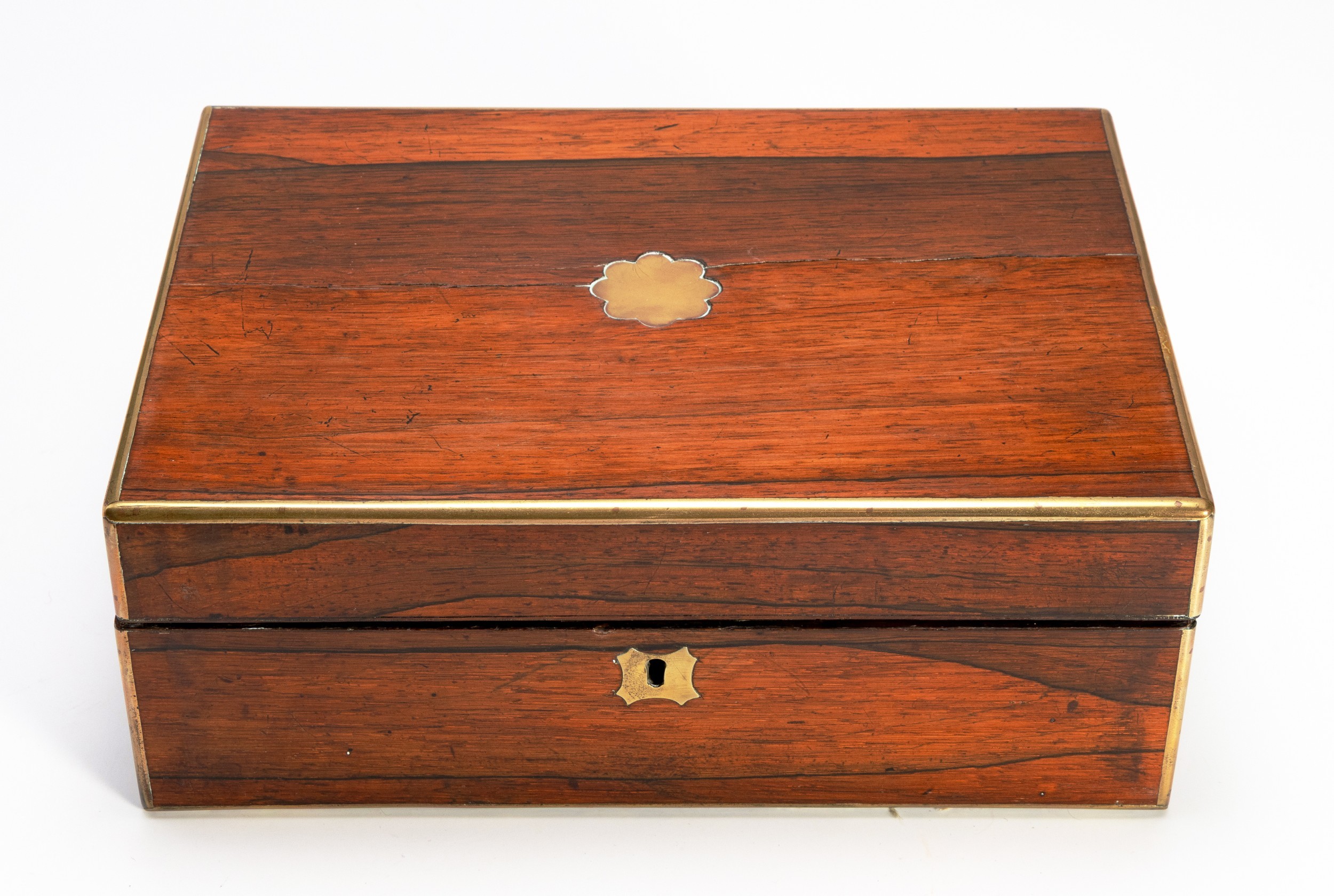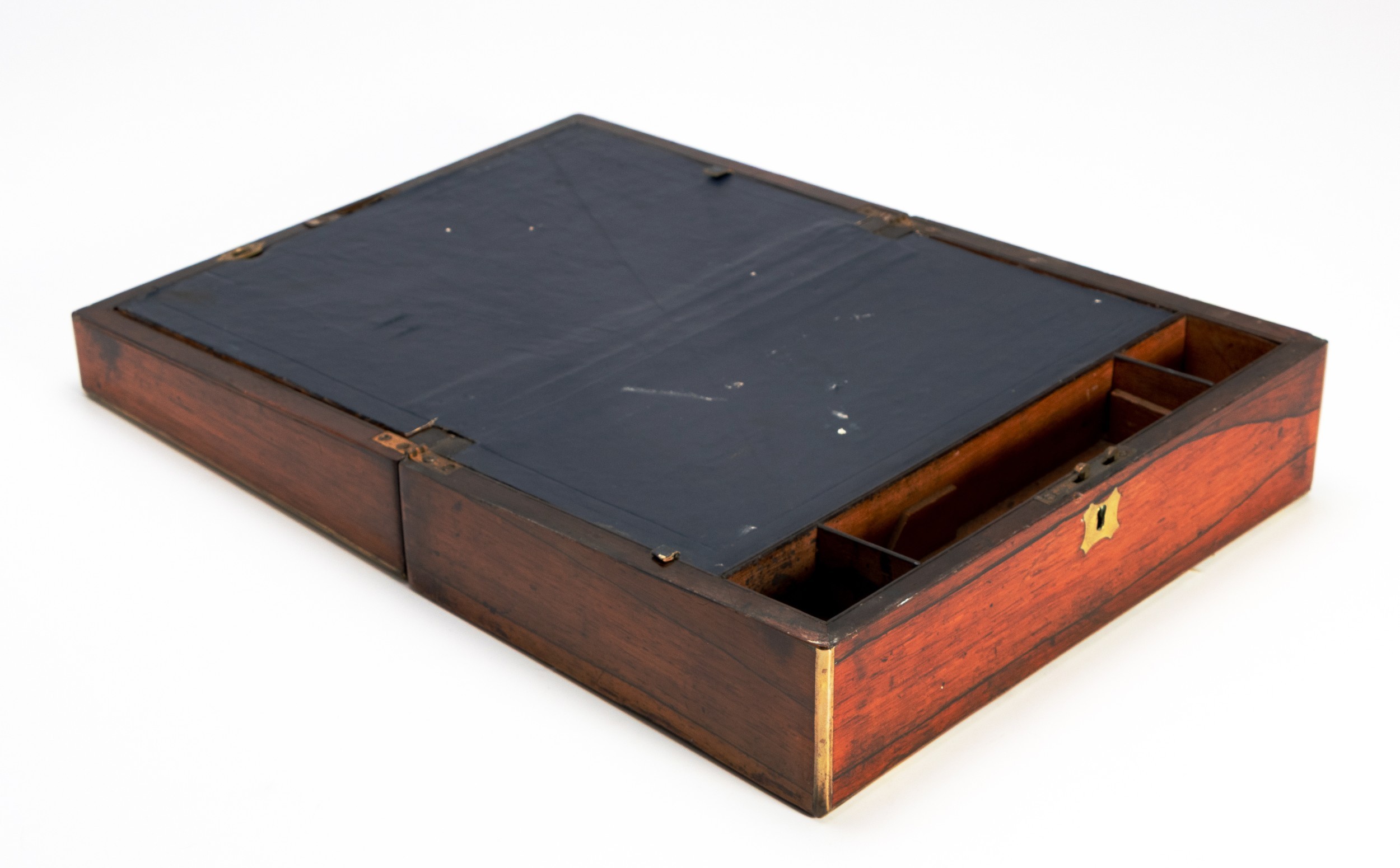 A ROSEWOOD TRAVELLING WRITING DESK, 19TH CENTURY