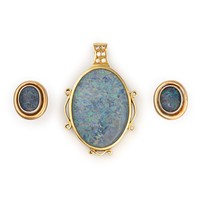 Manufactured by Mark Van Der Walt, claw set to the centre the emerald cut topaz weighing approximately 20 carats, in a 9ct white gold pendant with a V hook, pave set with three round brilliant-cut diamonds weighing 0.20 carats, colour G, clarity VS, with matching earrings, claw set with two emerald cut topaz, weighing 4 carats and pave set with 0.20 carats of round brilliant-cut diamonds, in 9ct gold, 13,5g all in