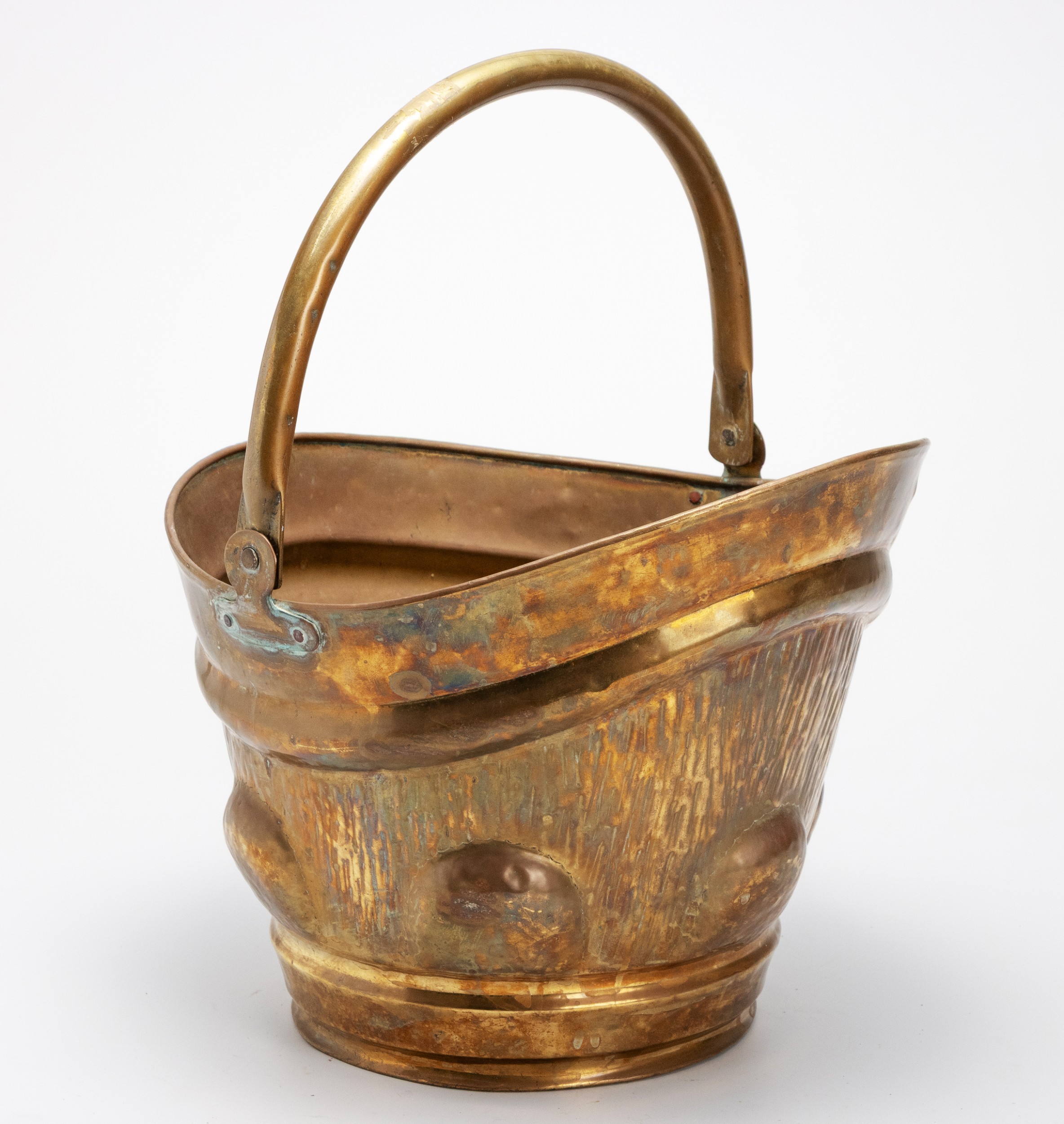 Helmet-shaped, with swing handle and riveted brass carrying handle