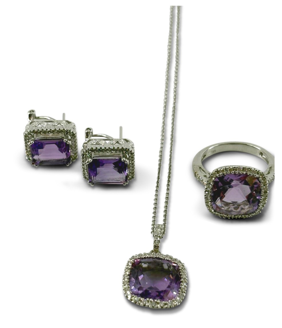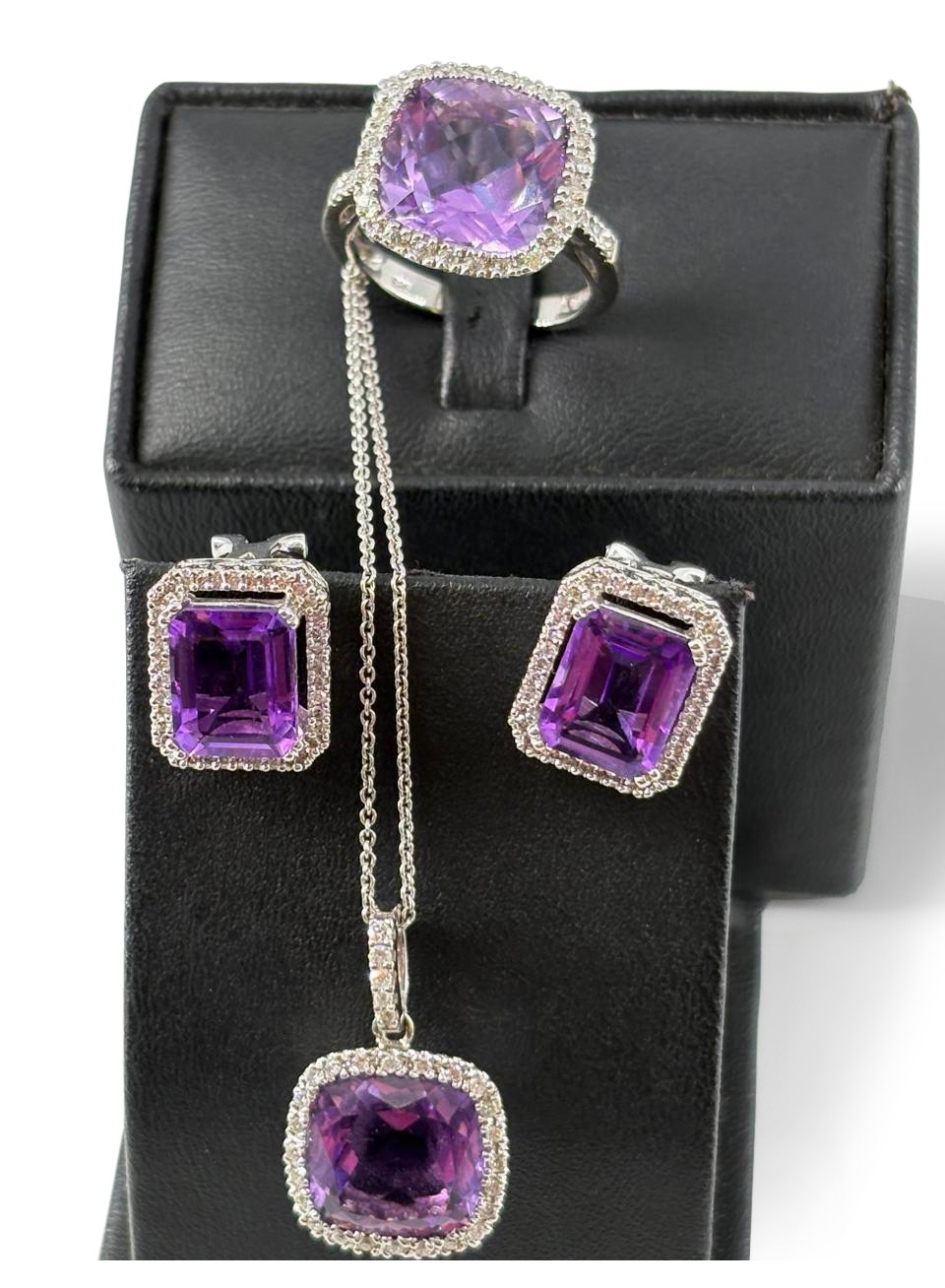 A SUITE OF NATURAL DIAMOND AND AMETHYST JEWELLERY