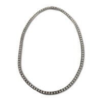 Bezel set to the centre the 6.51 carat cushion brilliant cut amethyst embellished by 0.40 carats of claw set round brilliant cut diamonds, colour G, clarity VS, in 18ct white gold, size L, the matching pendant 43cm long, the earrings bezel set to the centre with 13.4 carats of cushion cut amethysts and 1.20 carats of round brilliant cut diamonds, colour G, clarity VS, in 18ct white gold, 22,8g all in, total amethyst weight 26.2 carats