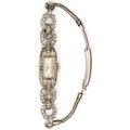 The 15mm rectangular dial with Arabic numeral hour markers, the 18ct gold case and integrated strap with fold over clasp, weight 12g, pave set with approximately 1.25 carats of round brilliant cut diamonds, colour G, clarity VS, 22g all in